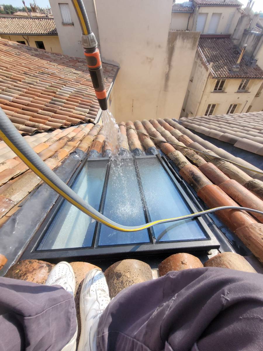Mise en eau localisée : Nous saturons une zone précise de la toiture avec de l'eau pour reproduire la fuite et en suivre le chemin.